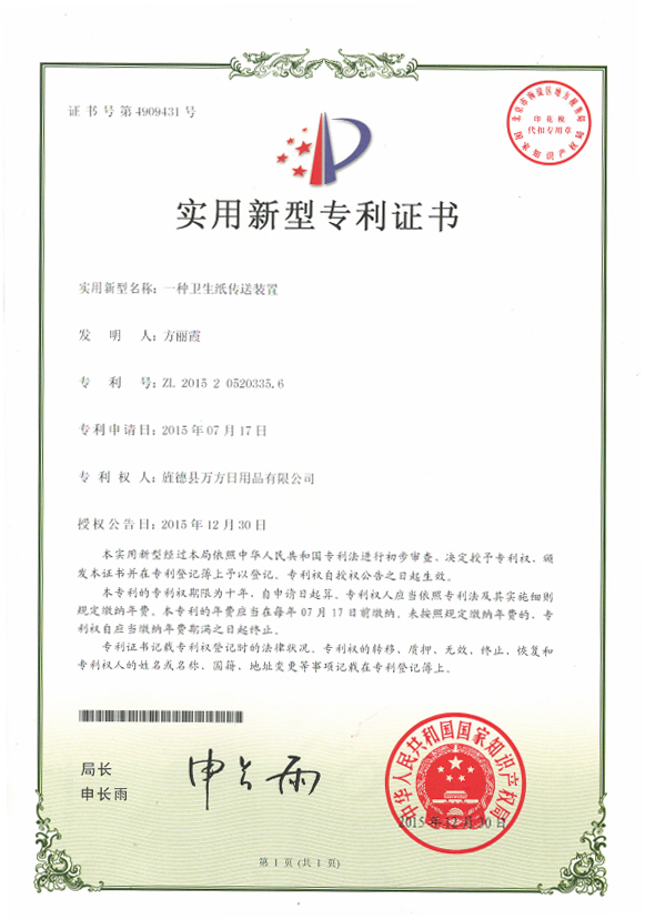 我们的公司持有多项专利证书,包括发明专利、实用新型专利和外观设计专利等